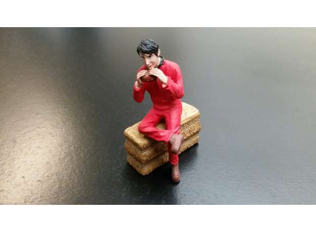 Farmer sitting and eatingHand painted detailed diorama figure in overall